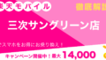 | Rakuten最強プラン | MNP乗り換え | 14,000ポイント | 全員対象 (再契約もOK) |