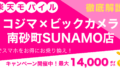 | Rakuten最強プラン | MNP乗り換え | 14,000ポイント | 全員対象 (再契約もOK) |